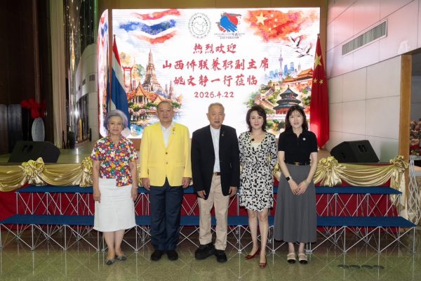 วันที่ 22 เมษายน 2569 ดร.อมร อภิธนาคุณ ประธานสมาพันธ์รวมใจชาวจีน ทั่วโลกเป็นหนึ่งเดียว พร้อมด้วยคุณพวงเพชร อภิธนาคุณ รองประธานบริหารสมาพันธ์ รวมใจชาวจีนทั่วโลกเป็นหนึ่งเดี ยว ร่วมต้อนรับ นางเหยา เหวินจิ้ง รองประธานกิตติมศักดิ์สหพันธ์ ชาวจีนโพ้นทะเลมณฑลซานซี
